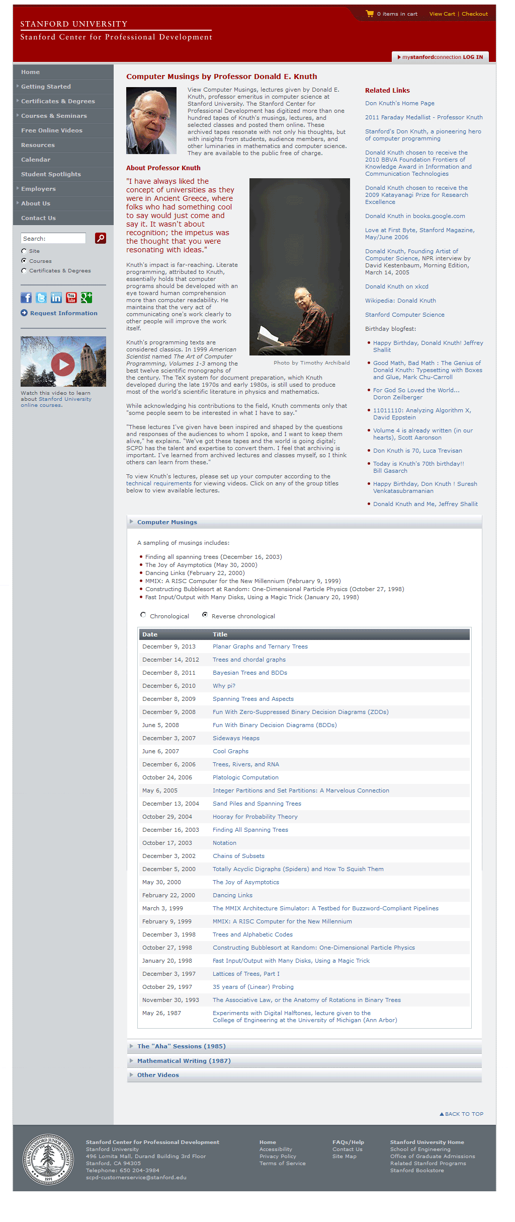 The actual mini-sites I created and maintained were later incorporated into sections of a larger, Stanford Online website, after my time at SCPD.